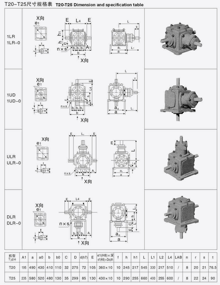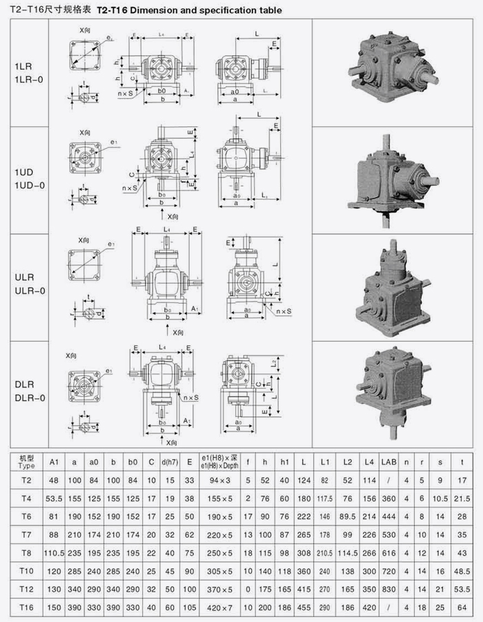 T系列螺旋傘齒輪轉向箱尺寸規(guī)格表