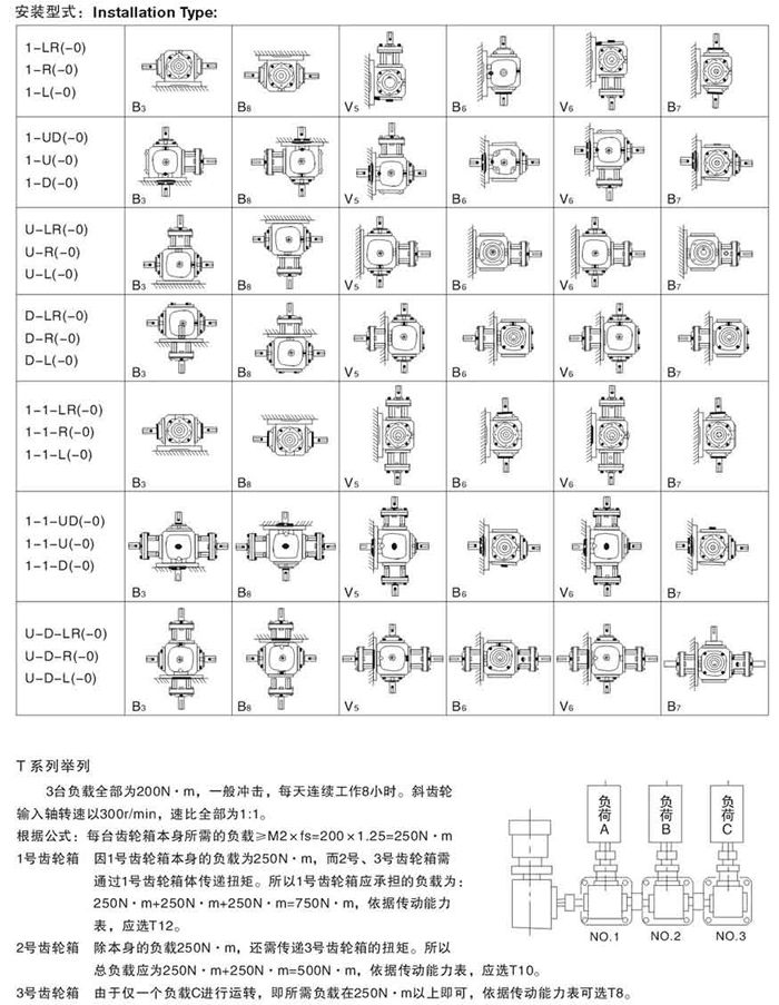 T系列螺旋傘齒輪轉(zhuǎn)向箱安裝形式