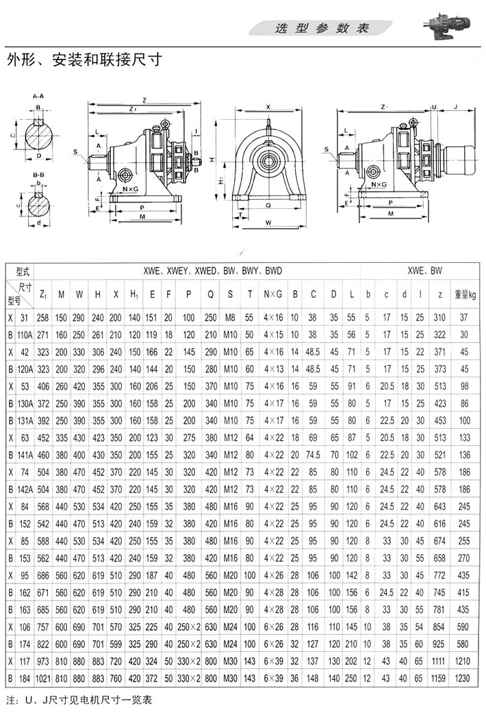X/B擺線針輪減速機雙級臥式減速機外形安裝尺寸