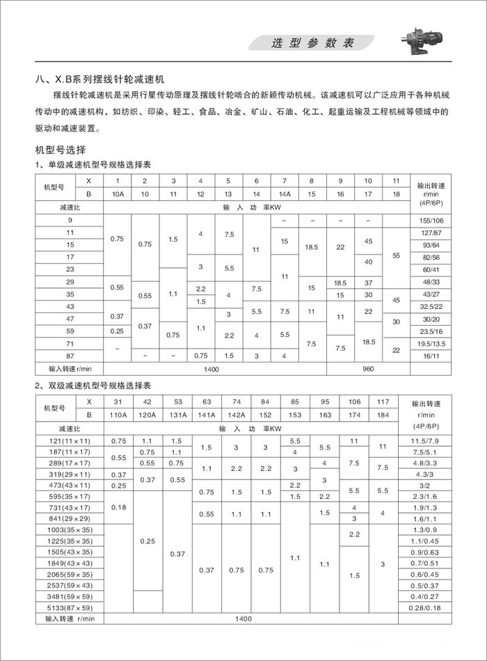 X/B系列單、雙級擺線減速機型號規(guī)格選型表