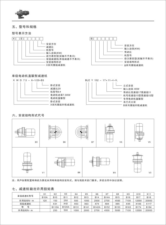 減速機(jī)型號表示方法、安裝形式、輸出許用扭矩表